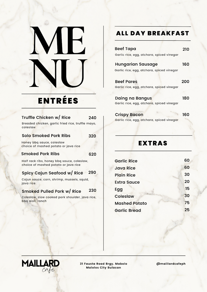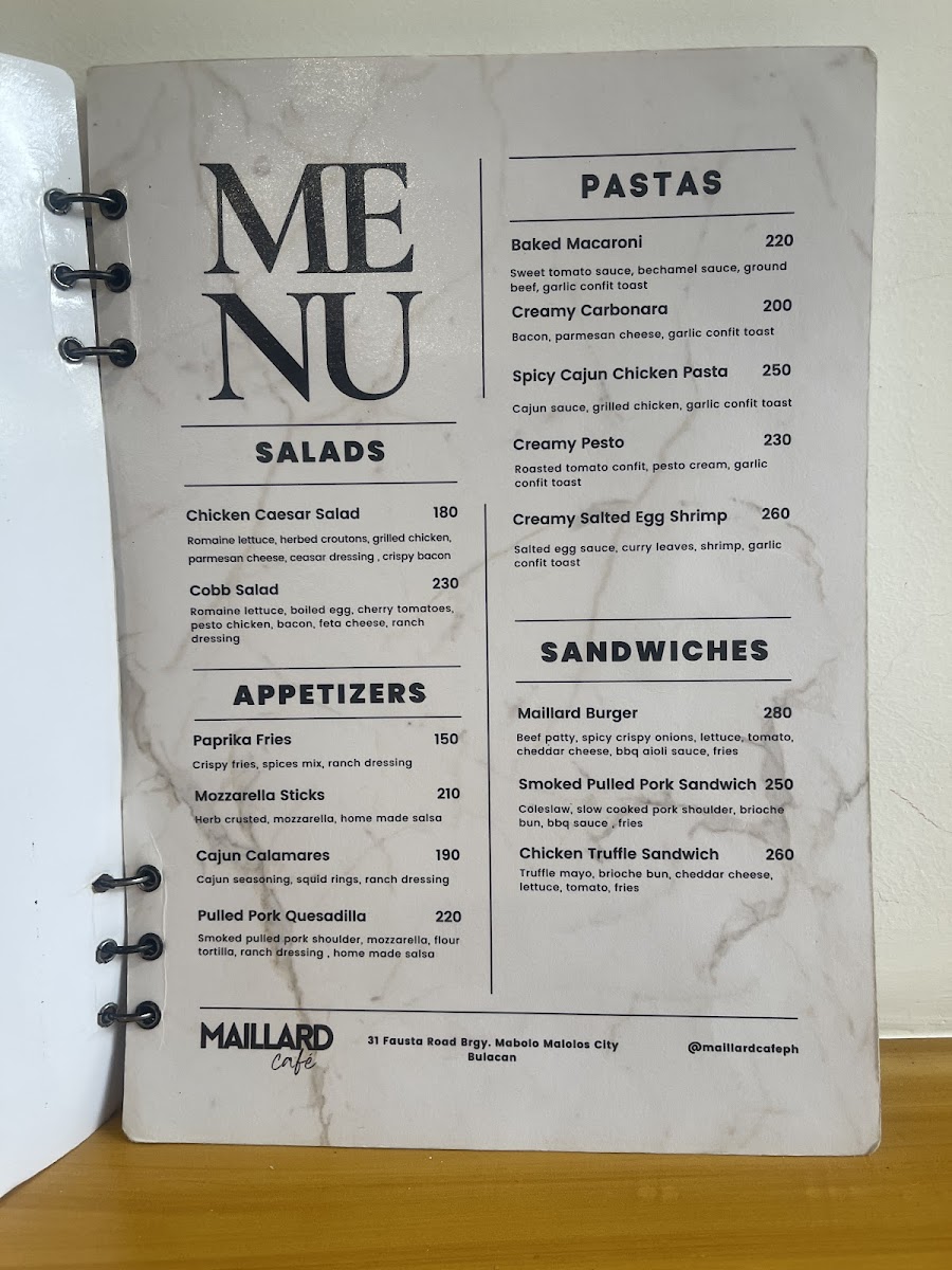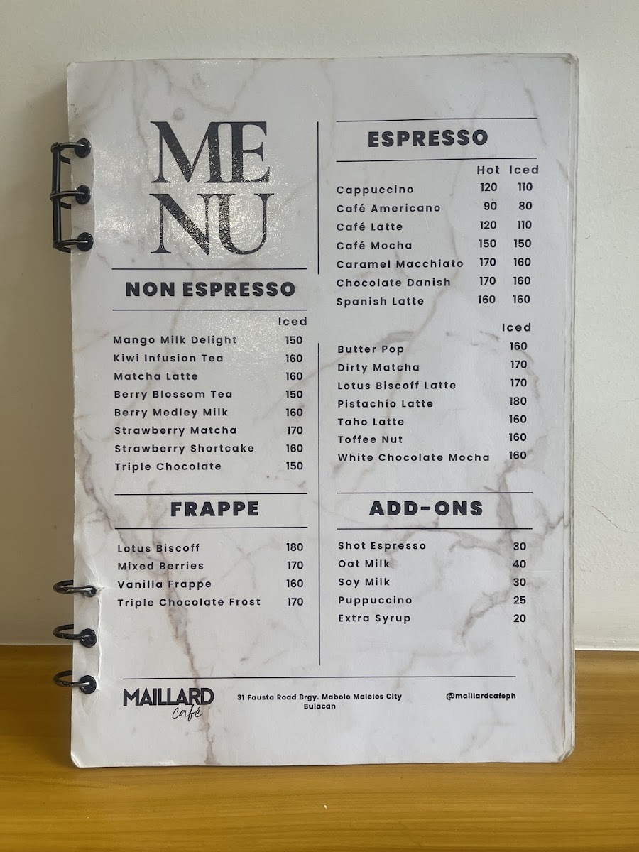 Maillard Café, Malolos Bulacan Menu