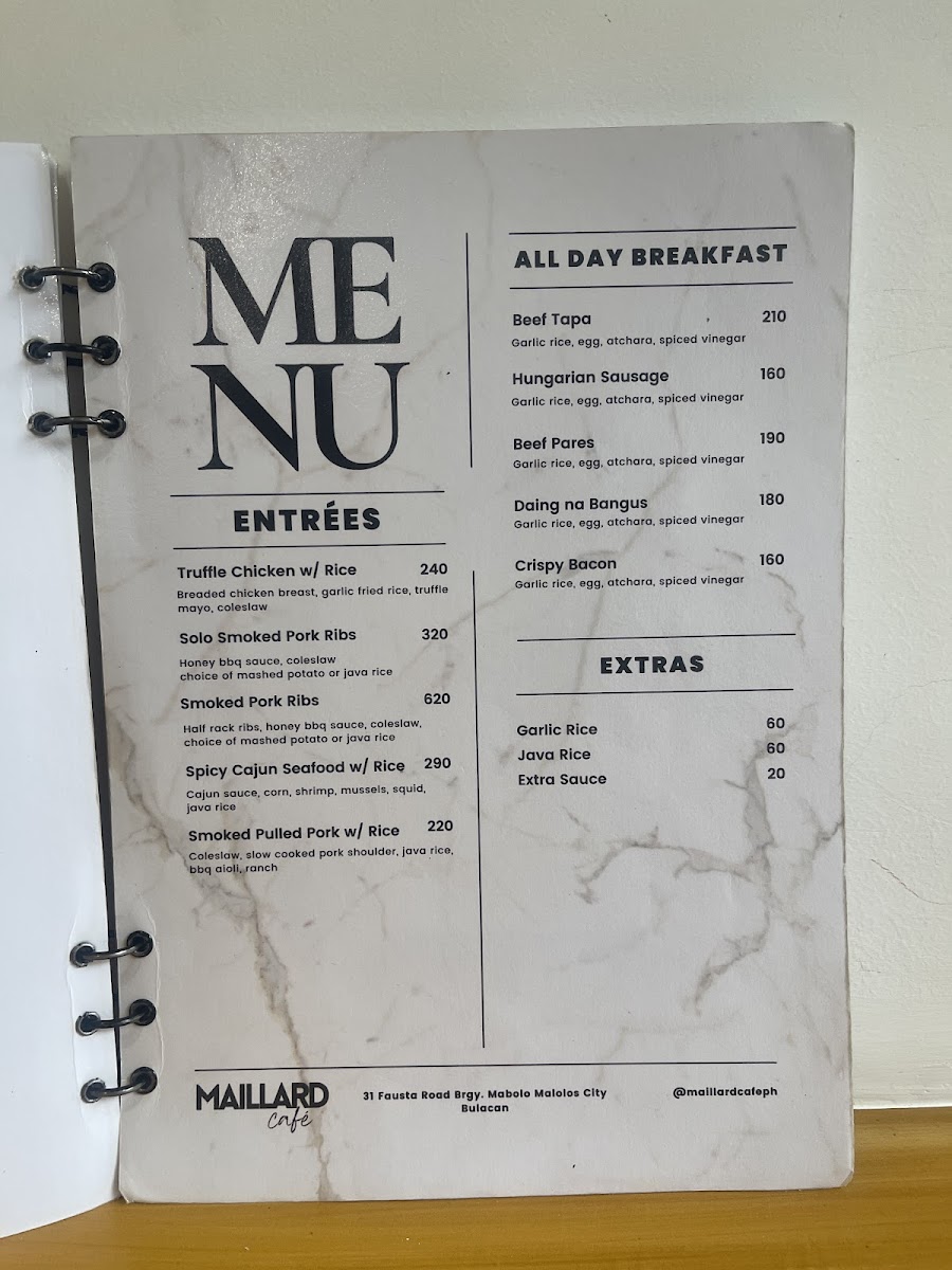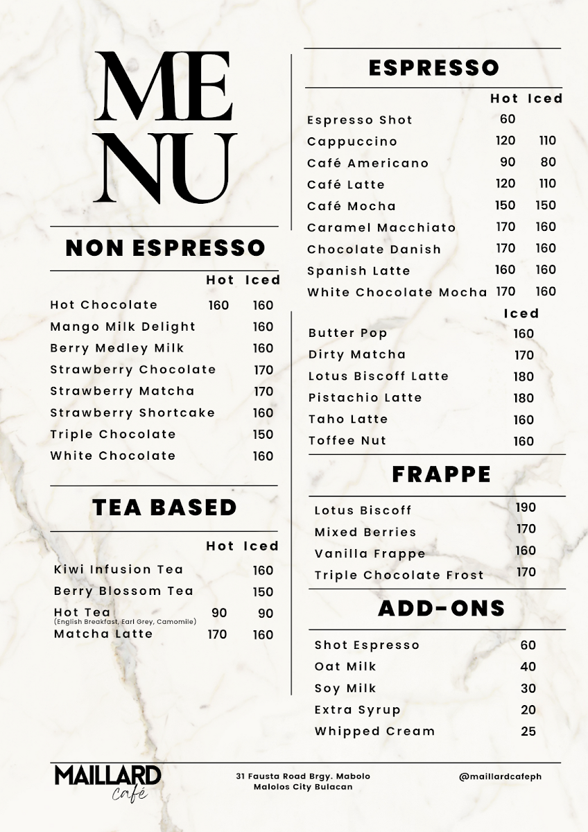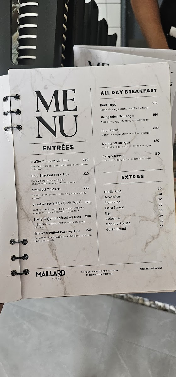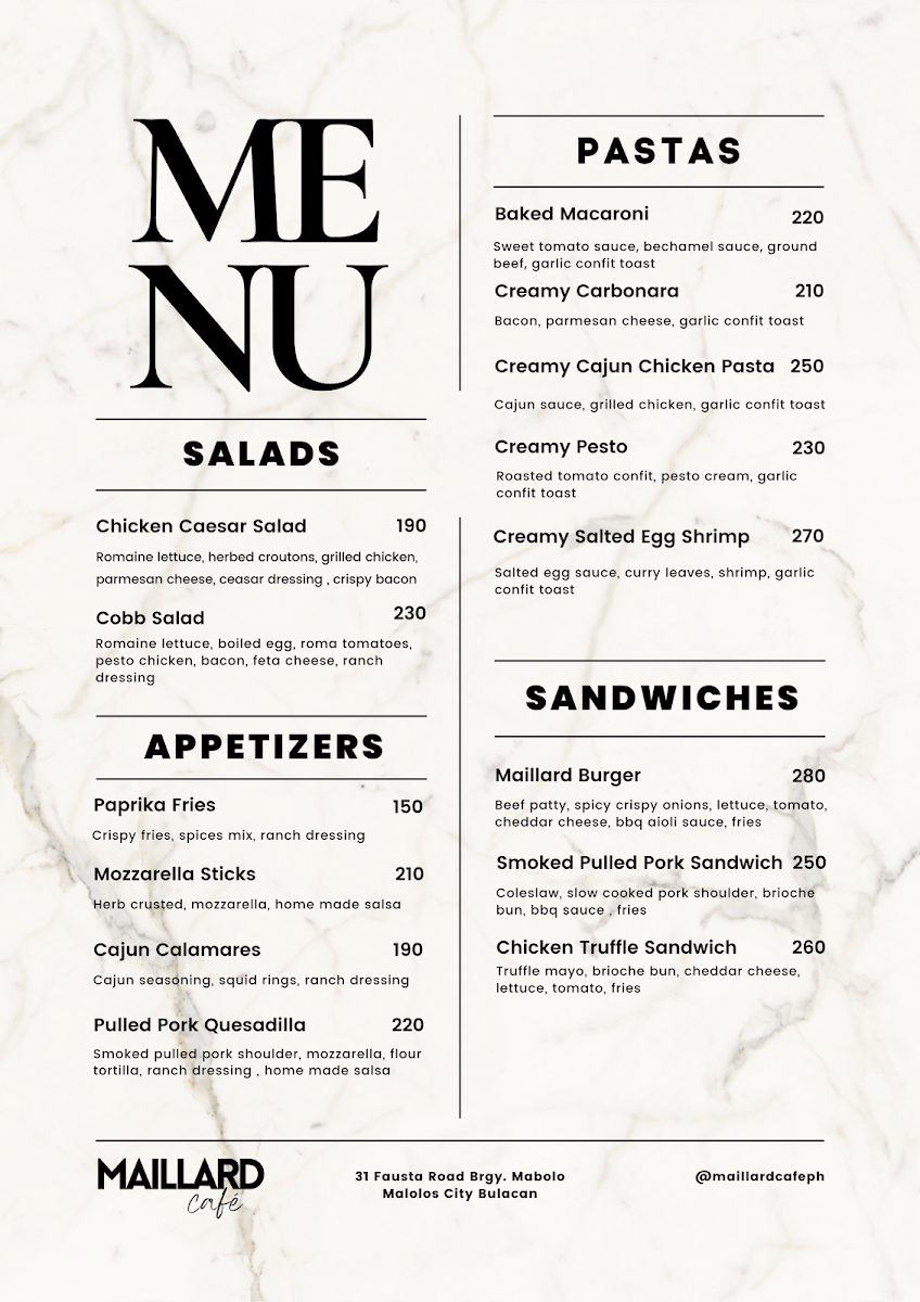 Maillard Café, Malolos Bulacan Menu
